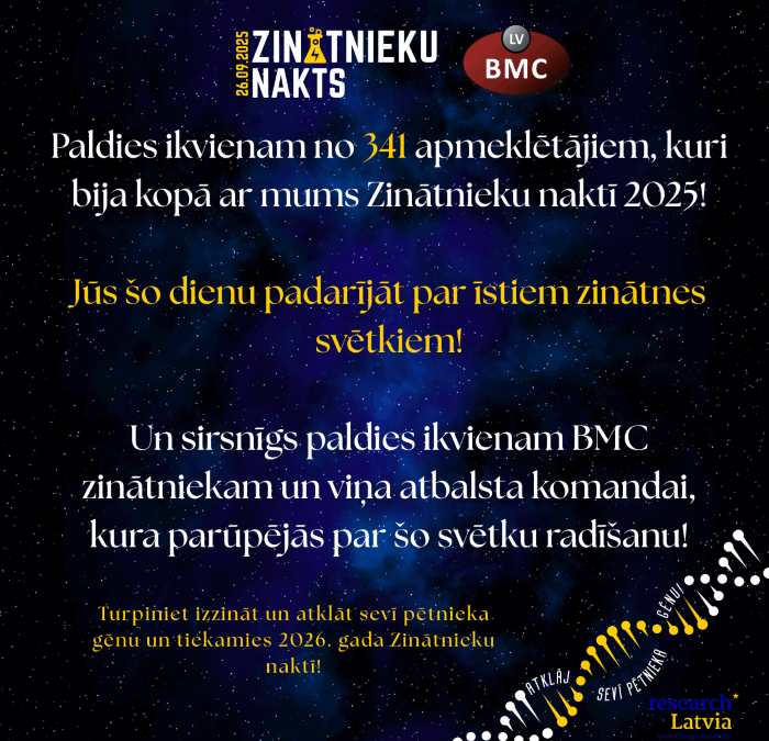 Kā arī pateicība mūsu zinātniekiem, ka radīja tik brīnišķīgu pasākumu, kurš aizrāva kā lielus tā mazus. Ļāva ielūkoties zinātnieku ikdienā un stāstīja par saviem pētījumiem. Īpaš paldies BMC Studentu padomei!